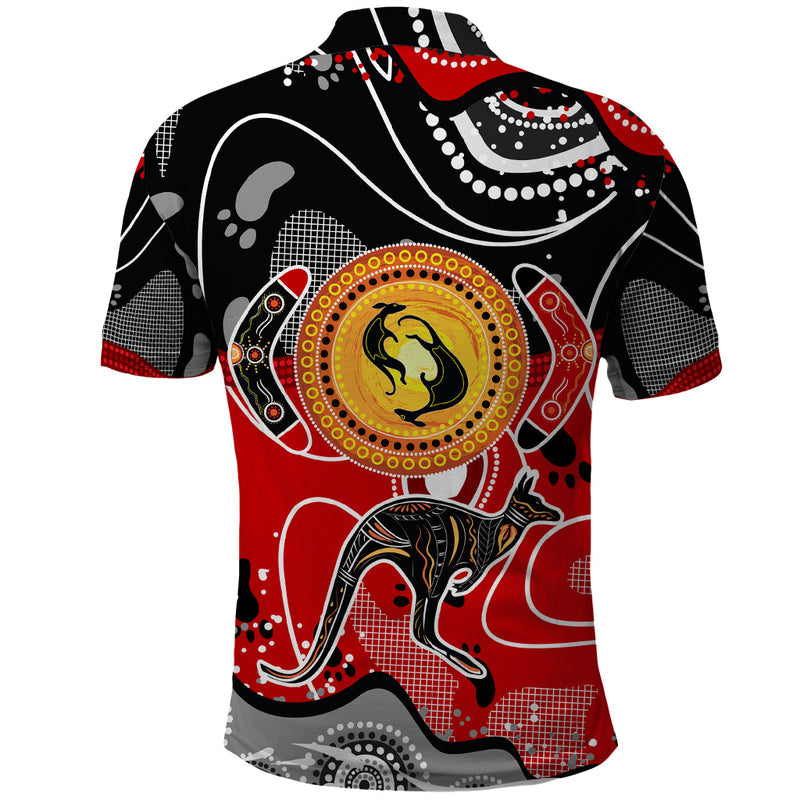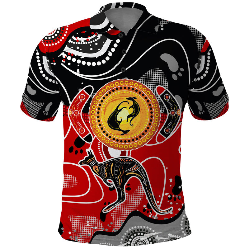 Aboriginal Flag Style Dot Art And Abstract Kangaroo Polo Shirt