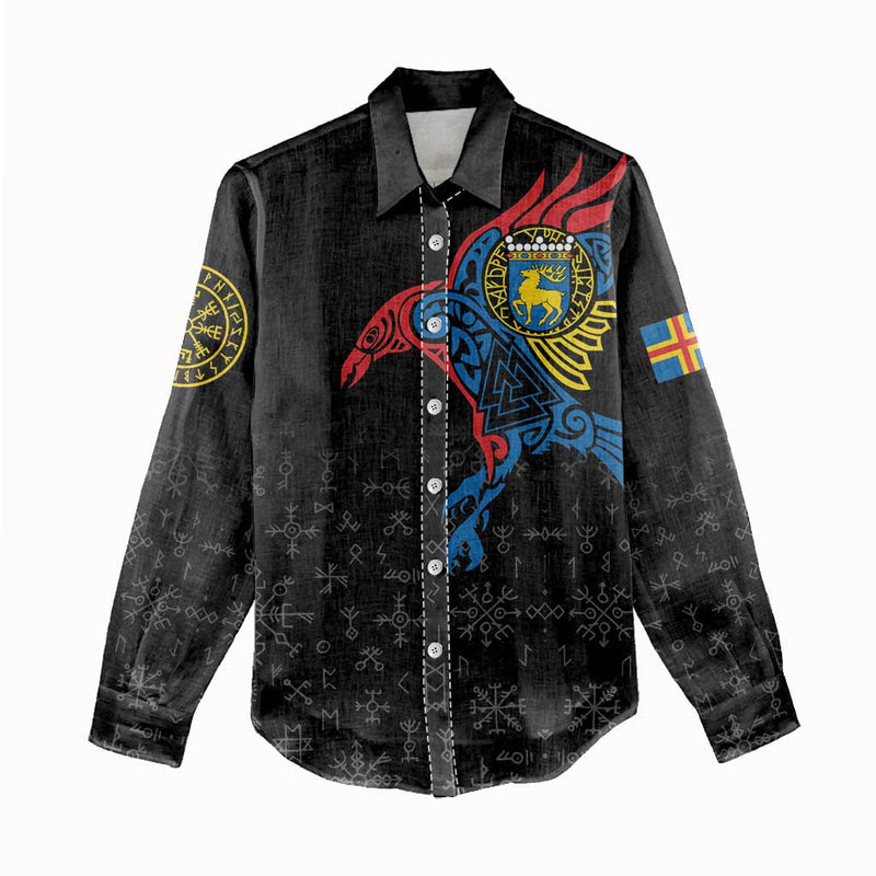 Aland Vikings Culture Norse Mythology Raven Tattoo Women Casual Shirt