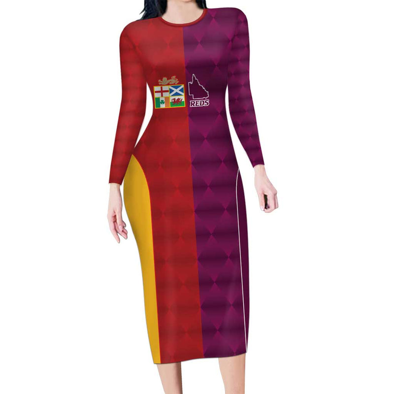 Custom British Lions Australia Queensland Sporty Style Long Sleeve Bodycon Dress