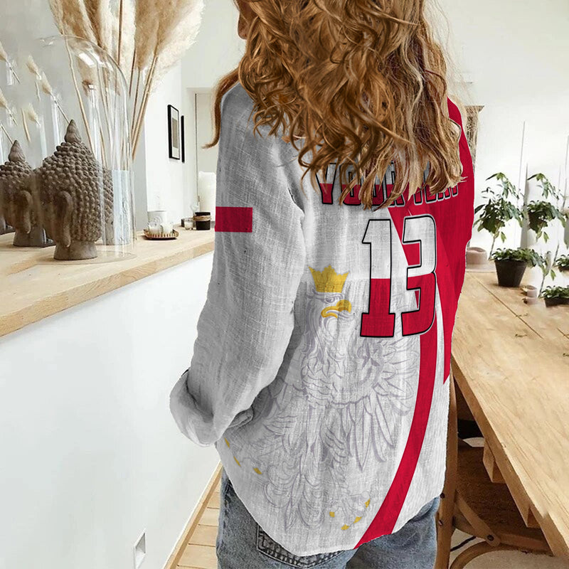 (Custom Text and Number) Poland Football Come On Biao Czerwoni Soccer Polski Champions World Cup Women Casual Shirt