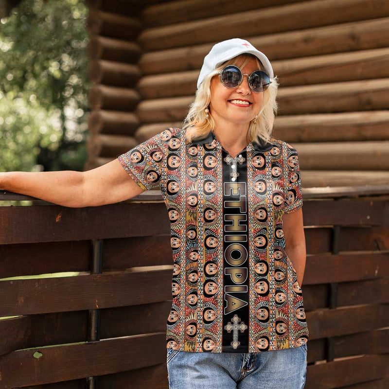 Ethiopian Tewahedo Angel Orthodox Black Color Women Polo Shirt