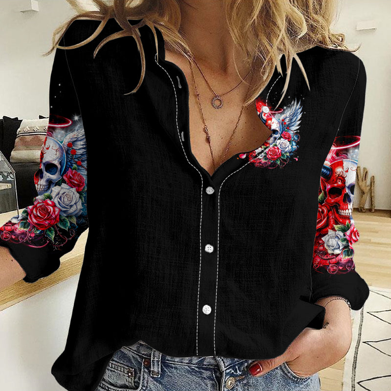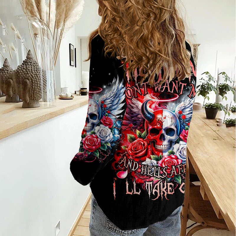 Evil Angel Skull Heaven Don't Want Me And Hell Afraid Women Casual Shirt